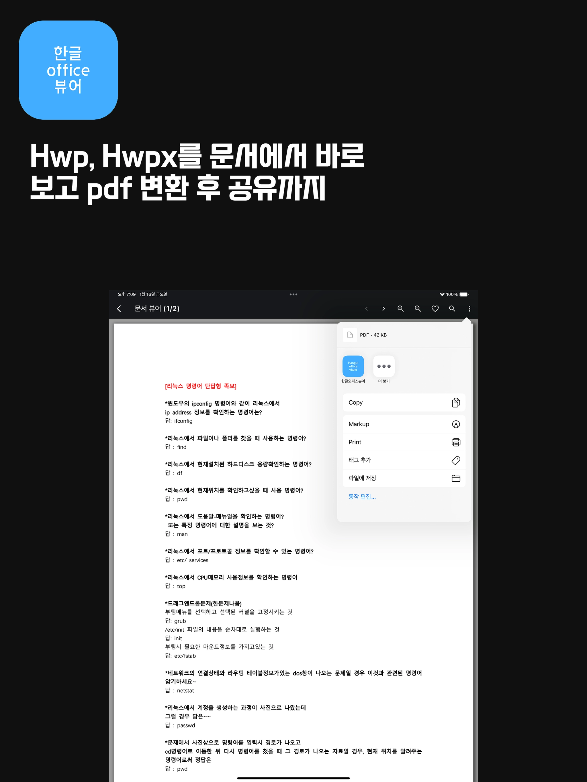 무료 한글 pdf 뷰어 어플(한글 office 뷰어)